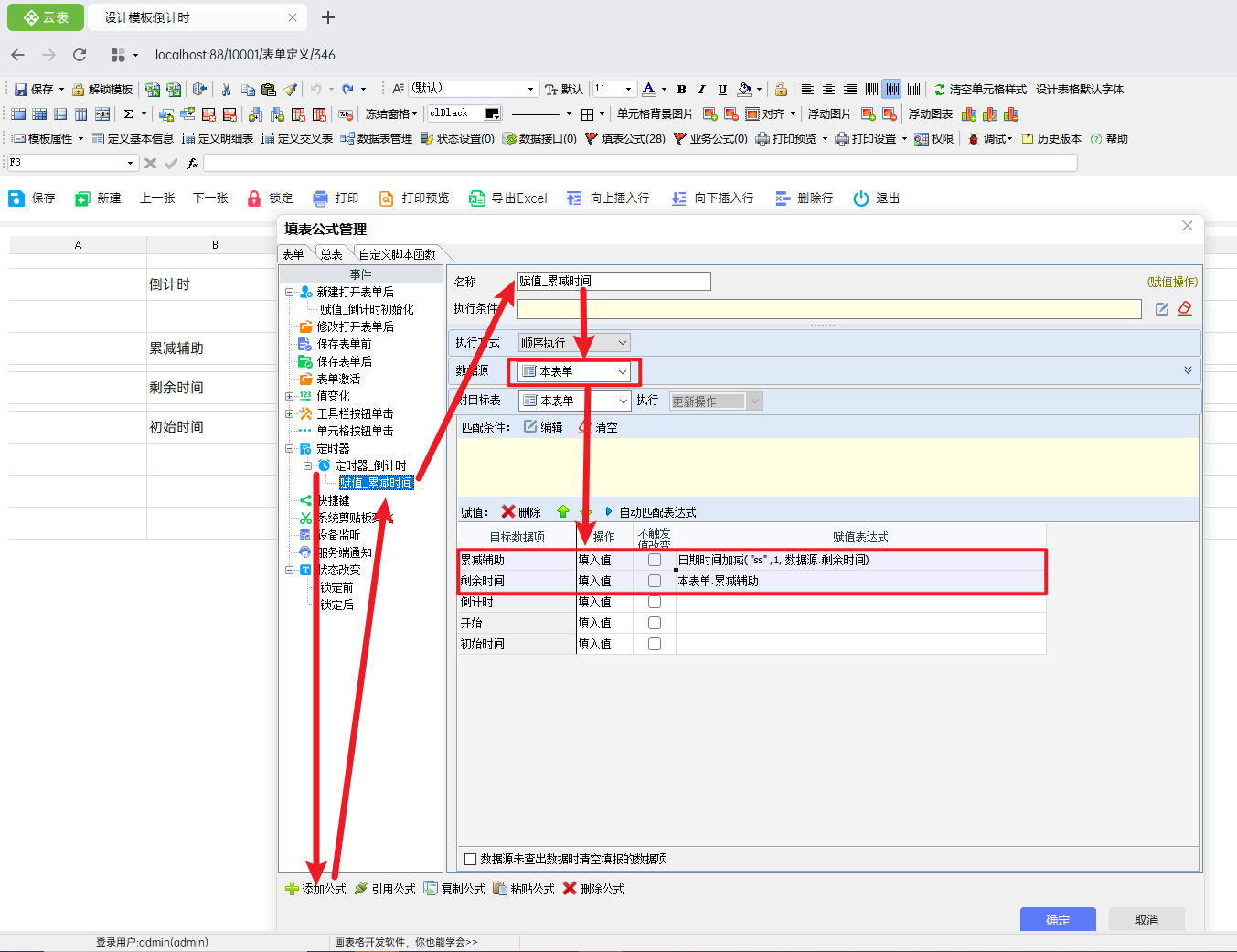 辅助数据项:【累减辅助】【剩余时间】【初始时间】
